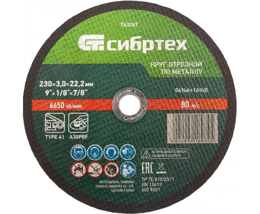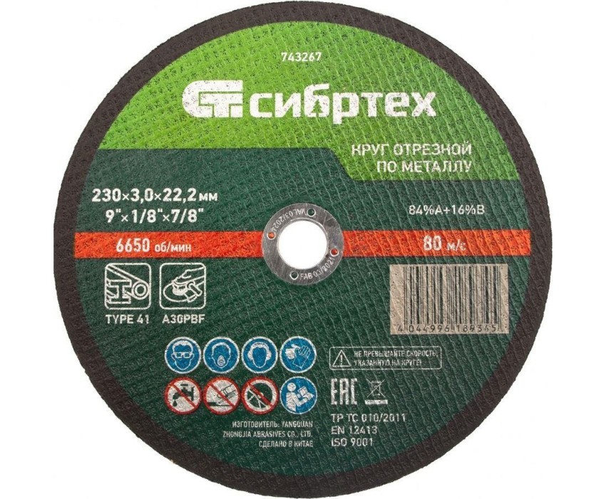 Отрезной круг по металлу Сибртех 743267, 230 х 3,0 х 22,2 мм, используется в качестве оснастки на УШМ для сухого реза изделий из углеродистых сталей: труб, арматуры, проволоки и т.д. Высокая производительность позволяет использовать круг как в быту, так и в частной мастерской или на небольших производствах.ПреимуществаАбразивные зерна из оксида алюминия имеют острые грани и легко справляются с резкой твердых материалов.Двухслойная усиленная стеклосетка придает кругу прочность на разрыв, что повышает безопасность работы.Бакелитовая связка с упрочняющими элементами обеспечивает максимальную износостойкость круга.Круг быстро режет материалы, позволяя получить аккуратный срез.Круг отличается превосходным качеством, т.к. изготовлен на высокотехнологичном оборудовании квалифицированным персоналом.