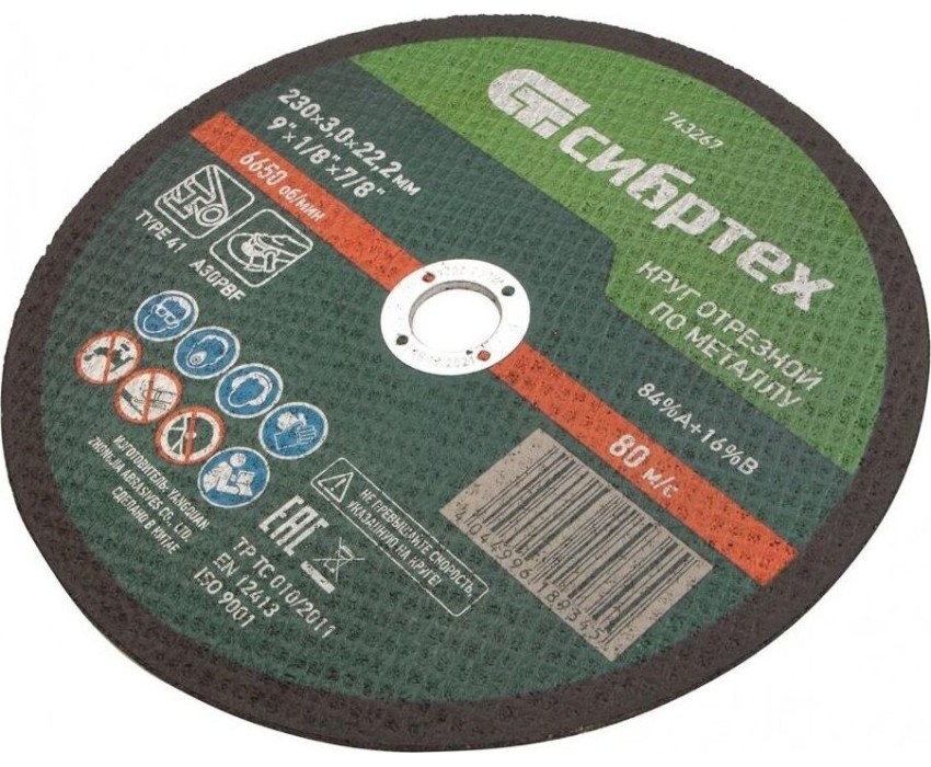 Отрезной круг СИБРТЕХ Круг отрезной по металлу, 230 х 3,0 х 22,2 мм 743267