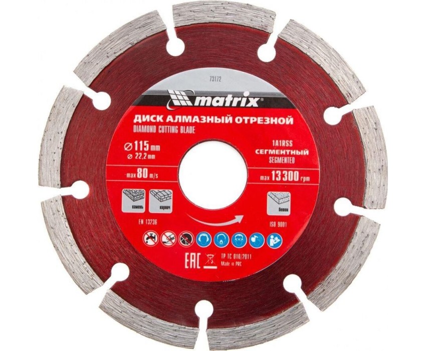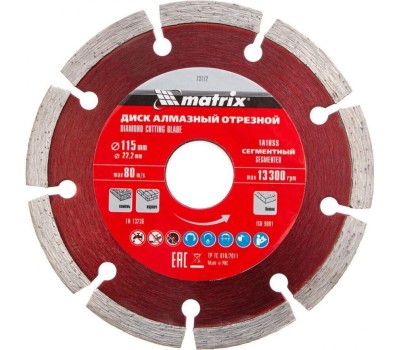 Диск алмазный MATRIX Диск алмазный, отрезной сегментный, 115 х 22.2 мм, сухая резка Professional 73172