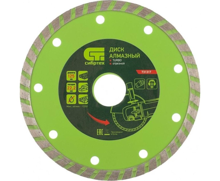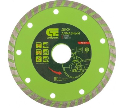 Диск алмазный СИБРТЕХ Диск алмазный, отрезной Turbo, 125 х 22.2 мм, сухая резка 731317
