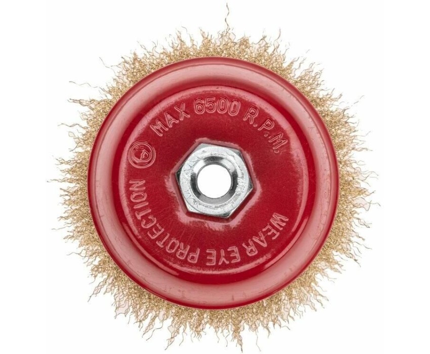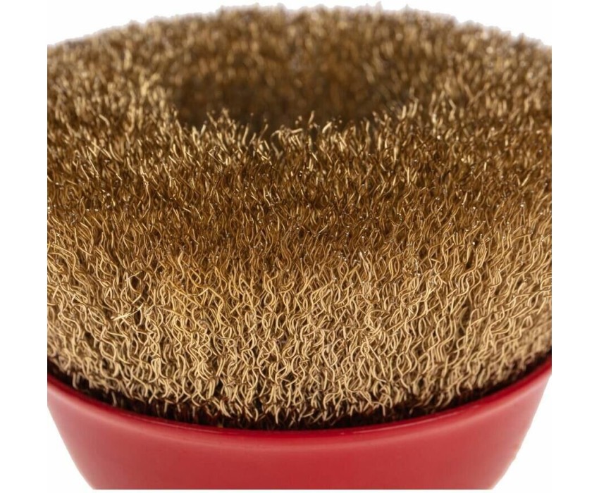 Коническая щетка KRANZ применяется в составе с угловой шлифовальной машиной с целью очистки разнообразных металлических деталей и заготовок от слоя краски, лака, заусенцев, ржавчины, окалины или нагара. Подходит для обработки и выравнивания сварочных швов на стальных поверхностях. Витая щетина из латунированной проволоки оптимально подходит для аккуратной обработки и шлифовки, позволяет удалить тонкий слой материала, а также придать поверхности глянцевый блеск. Латунированная проволока имеет высокую устойчивость к коррозии, а при работе возникает меньше искр. Коническая форма щетки позволяет легко достигать труднодоступных участков и обрабатывать поверхности различных форм и размеров. Тип соединения М14 обеспечивает простоту и надежность установки на УШМ. Инструмент соответствует действующим стандартам качества и подходит для использования в условиях интенсивного и сложного труда.