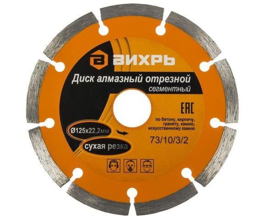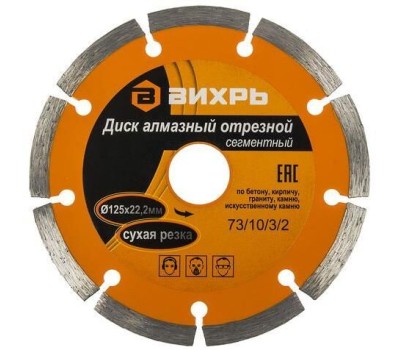 Отрезной диск ВИХРЬ Отрезной диск 73/10/3/2, по бетону, 125мм, 22.2мм