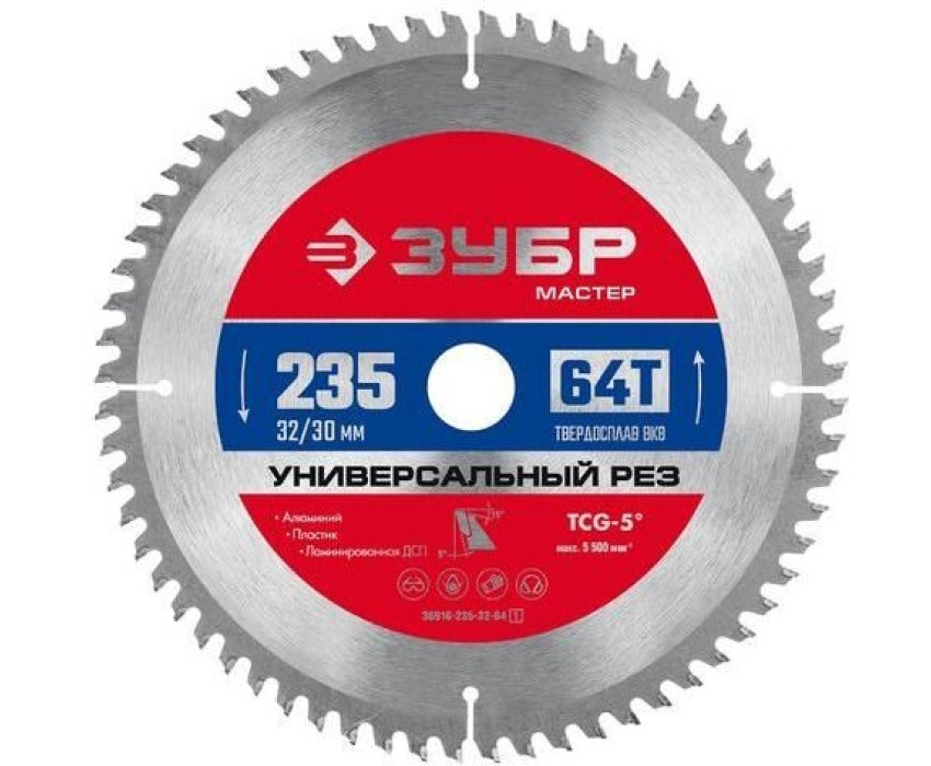 ЗУБР Пильный диск 36916-235-32-64_z01, по алюминию, 235мм, 1.6мм, 32мм
