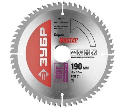 ЗУБР Пильный диск Точный-МУЛЬТИ рез, по алюминию, 190мм, 1.4мм, 30мм [36916-190-30-60]
