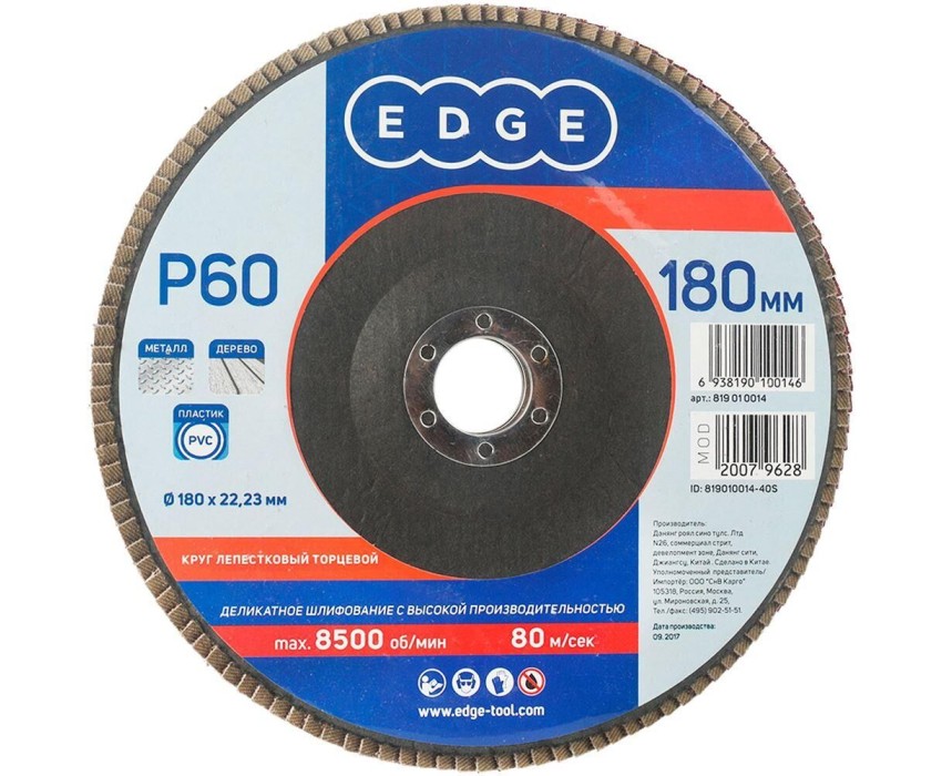 Круг лепестковый EDGE Круг лепестковый торцевой (180х22.23 мм, P60)