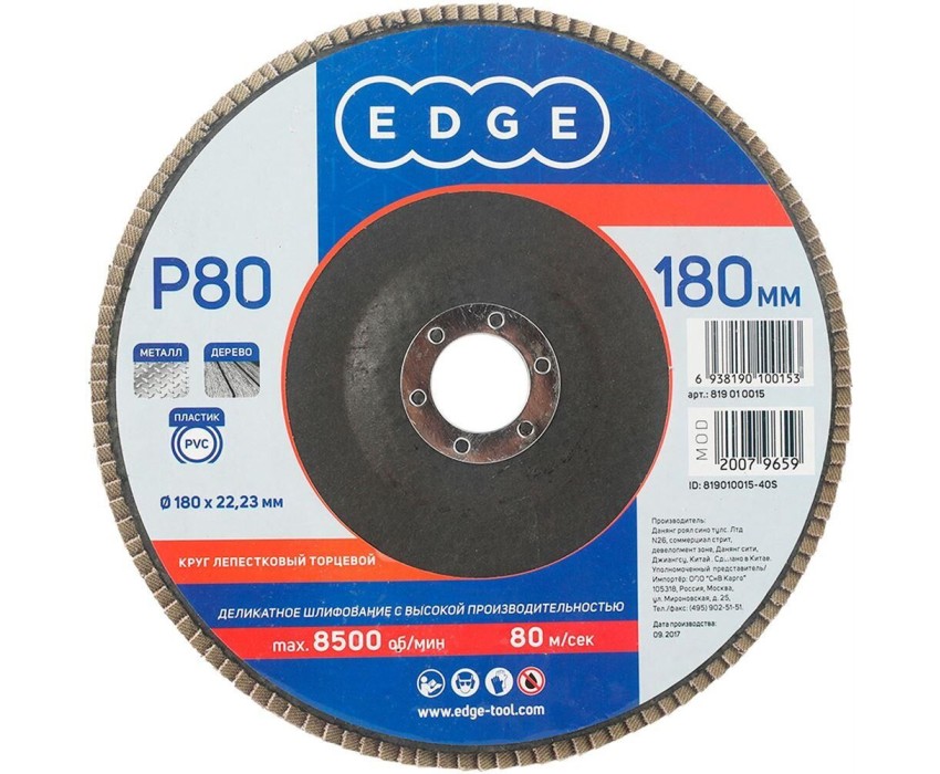 Круг лепестковый EDGE Круг лепестковый торцевой (180х22.23 мм, P80)