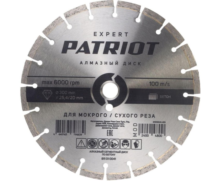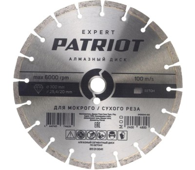 Диск алмазный PATRIOT Диск алмазный сегментный (300х25 мм)