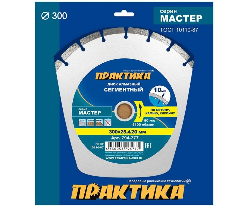 Диск алмазный сегментный Мастер (300x25.4/20 мм) ПРАКТИКА 794-777 предназначен для ручных резчиков. Применяется для сухого реза кирпича, бетона, тротуарной плитки, бордюров. Диск обеспечивает чистые кромки без сколов. Охлаждение водой увеличивает ресурс диска. Технические характеристики сегментного алмазного диска ПРАКТИКА 794-777 Диаметр 300 мм Тип диска алмазный Вид диска сегментированный Посадочный диаметр 25.4/20 мм Тип по бетону Количество сегментов 23 Тип реза сухой (с СОЖ и без)