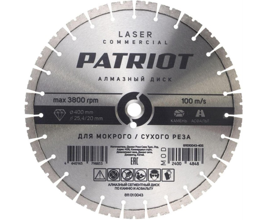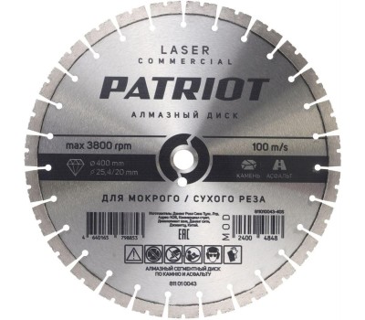 Диск алмазный PATRIOT Диск алмазный сегментный (400х25 мм)