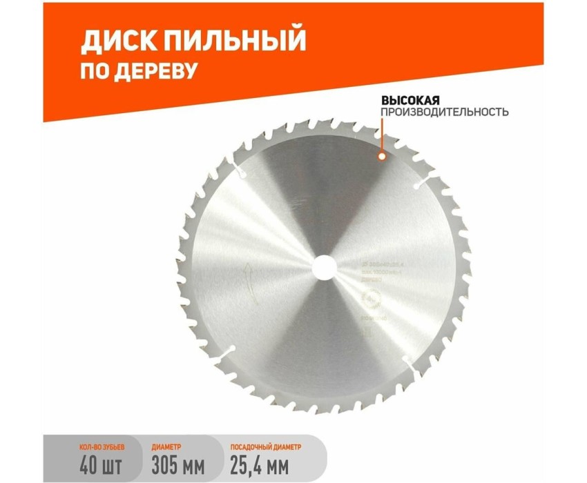 Наружный диаметр 305мм, кол-во зубьев 40, посадочное отверстие 25,4мм.