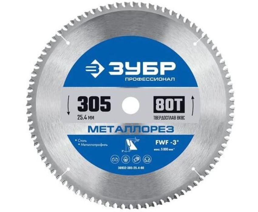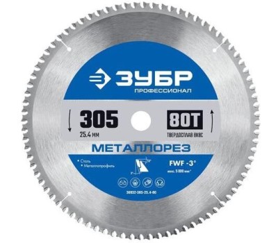 ЗУБР Пильный диск 36932-305-25.4-80, по металлу, 305мм, 2мм, 25.4мм