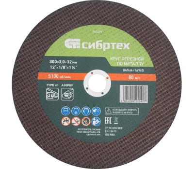 Круг отрезной СИБРТЕХ Круг отрезной по металлу, 300 х 3,0 х 32 мм, 84%A+16%B// 743297