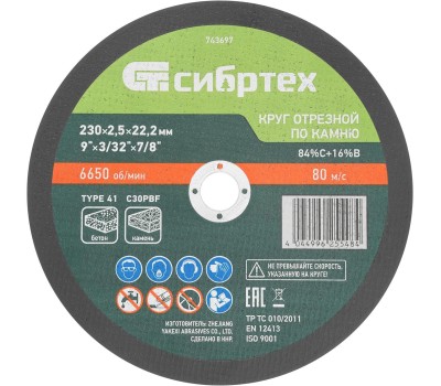 Круг отрезной СИБРТЕХ Круг отрезной по камню, 230 х 2,5 х 22,2 мм, 84%C+16%B// 743697