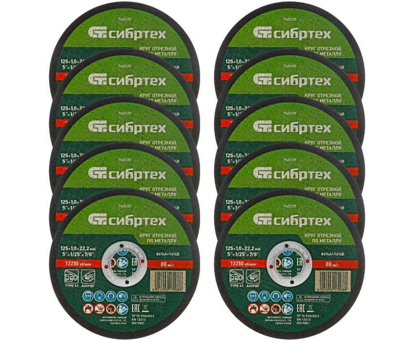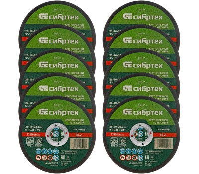 СИБРТЕХ Круг отрезной по металлу, 125 х 1,0 х 22,2 мм, 84%A+16%B, в пленке, 10 шт 743133