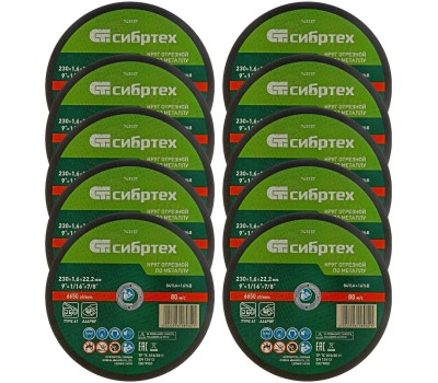 СИБРТЕХ Круг отрезной по металлу, 230 х 1,6 х 22,2 мм, 84%A+16%B, в пленке, 10 шт 743233