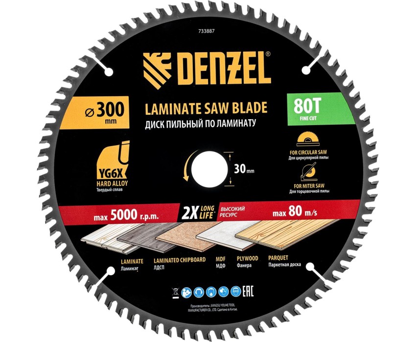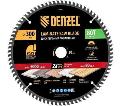 DENZEL Пильный диск по ламинату ф300 х 30 мм, 80 зубьев 733887