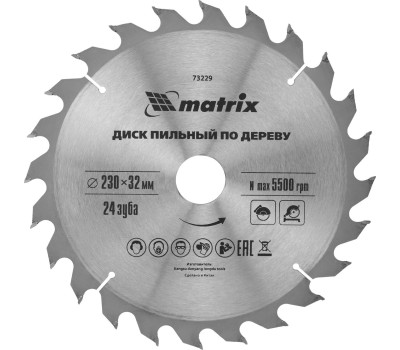 MATRIX Пильный диск по дереву, 230 х 32 мм, 24 зуба, кольцо 30/32 Professional 73229