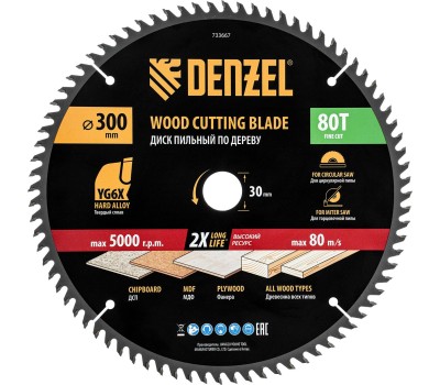 DENZEL Пильный диск по дереву ф300 х 30 мм, 80 зубьев 733667