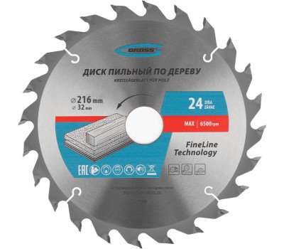 GROSS Пильный диск по дереву 216 x 32/30 x 24Т 73329