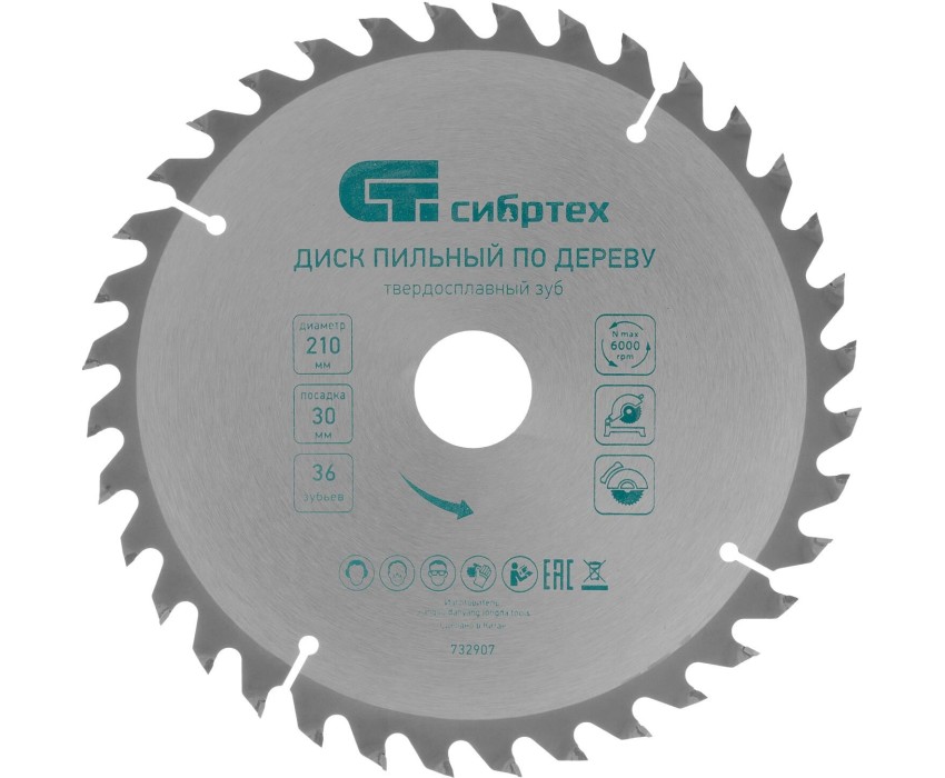 СИБРТЕХ Пильный диск по дереву, 210 х 30 мм, 36 зубьев 732907