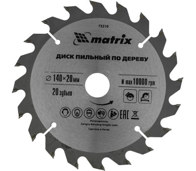 MATRIX Пильный диск по дереву, 140 х 20 мм, 20 зубьев, кольцо 16/20 Professional 73210