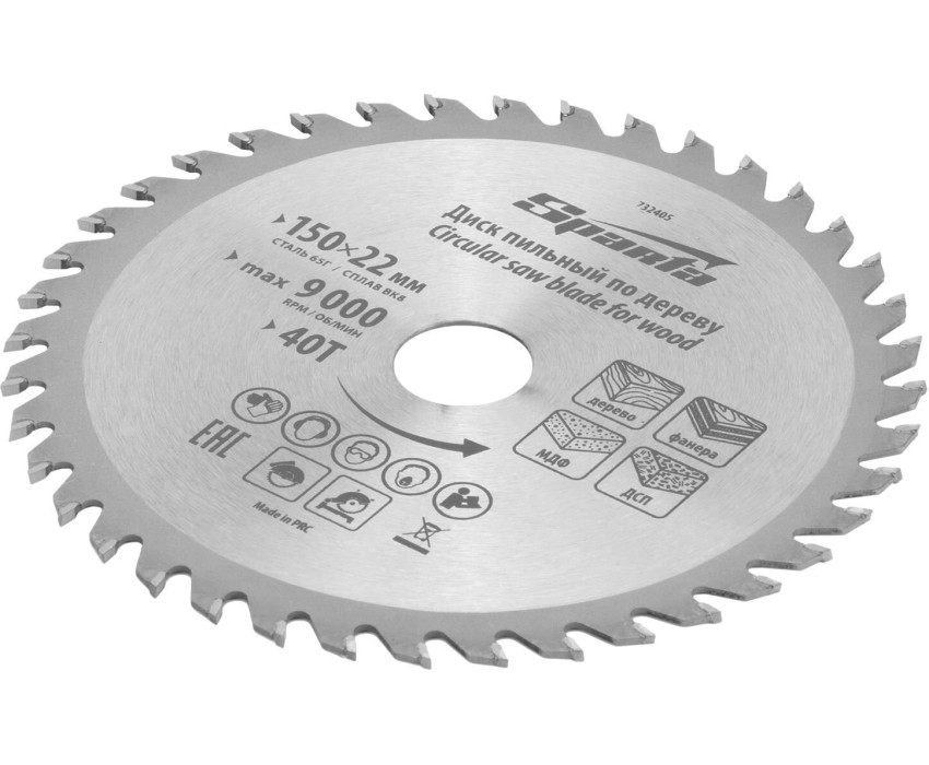 SPARTA Пильный диск по дереву, 150 х 22 мм, 40 зубьев 732405