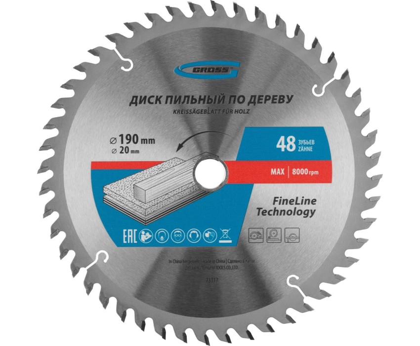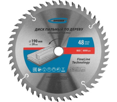GROSS Пильный диск по дереву 190 x 20/16 x 48Т 73317