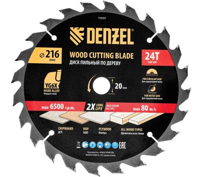 DENZEL Пильный диск по дереву ф216 х 20 мм, 24 зубьев 733507