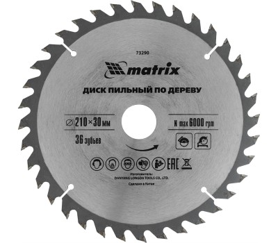 MATRIX Пильный диск по дереву, 210 х 30 мм, 36 зубьев Professional 73290