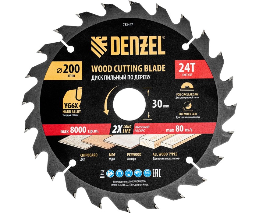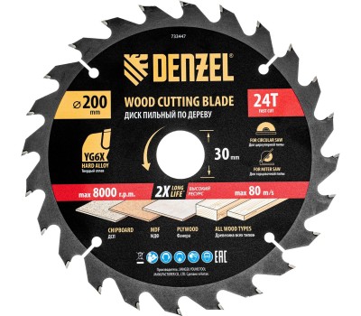 DENZEL Пильный диск по дереву ф200 х 30 мм, 24 зубьев 733447