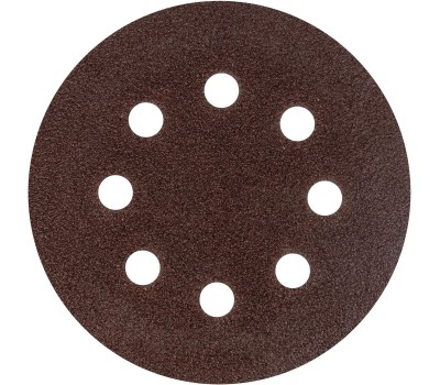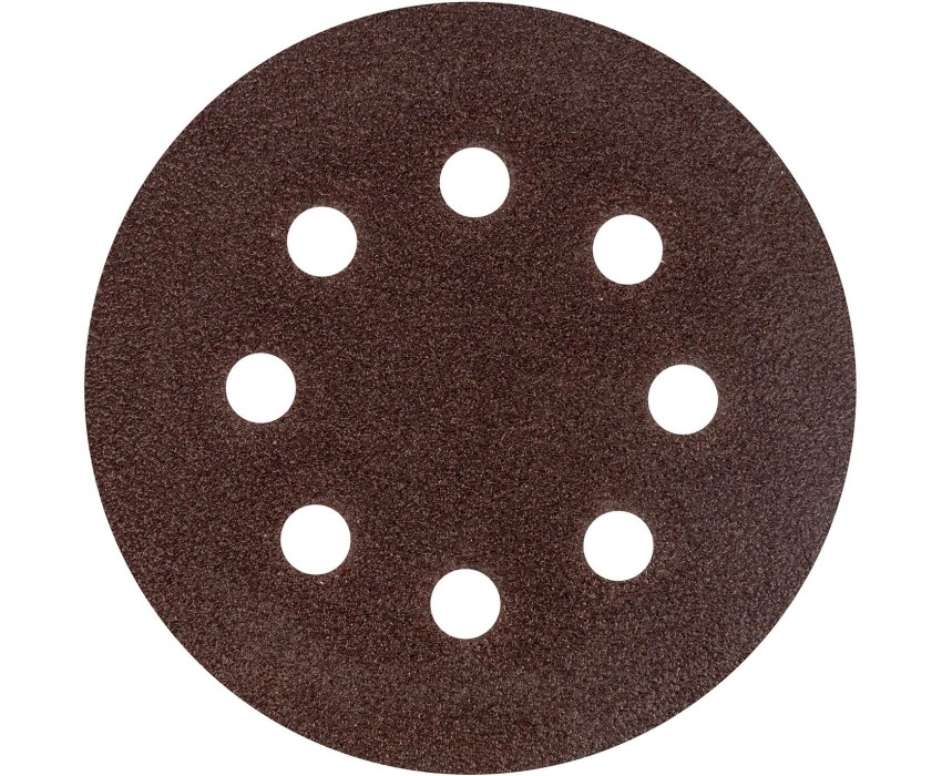 Перфорированный абразивный круг Сибртех 738027 диаметром 125 мм, с крупнозернистым абразивом P 40, на ворсовой подложке под «липучку», 5 шт. в упаковке, используется для сухого чернового шлифования металла, древесины, пластика и других поверхностей. Позволяет избавиться от заусенцев, подходит для зачистки старого покрытия (краски/лака), удаления ржавчины, снятия слоя материала. Круг устанавливается на эксцентриковую (орбитальную) шлифовальную машинку с отводом воздуха или на дрель с помощью опорной насадки. Преимущества Эффективная обработка — перфорация обеспечивает быстрый отвод отработанного материала, что особенно важно при шлифовке древесины. Быстрая установка и замена оснастки — благодаря ворсовой подложке круг крепится к опорной тарелке на липучку за несколько секунд. Удобная комплектация — 5 кругов хватит для выполнения большого объема работ.
