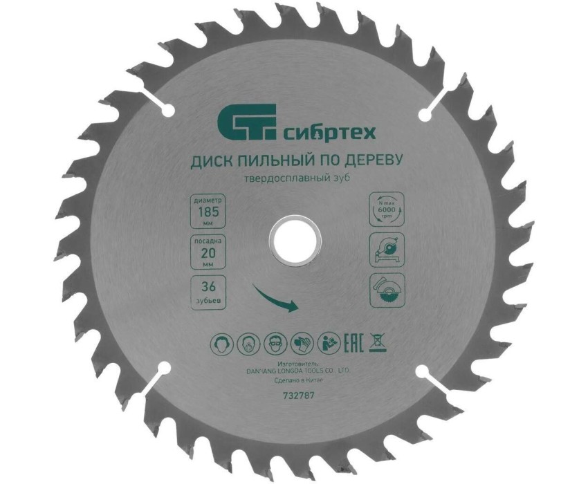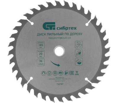 СИБРТЕХ Пильный диск 732787, по дереву, 185мм, 20мм