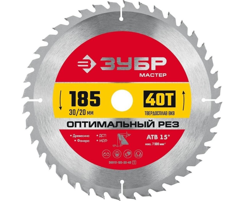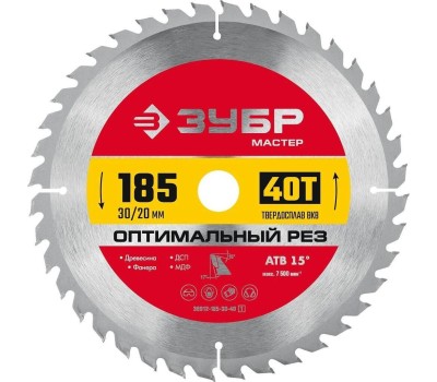 ЗУБР Пильный диск 36912-185-30-40_z01, по дереву, 185мм, 1.4мм, 20мм