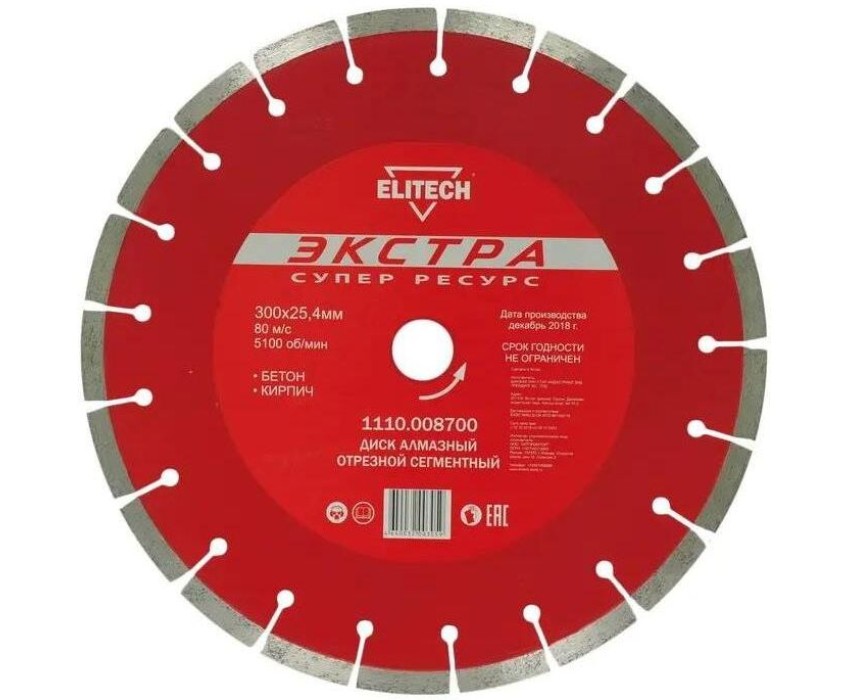ELITECH Алмазный диск 1110.008700, по бетону, кирпичу, 300мм, 25.4мм