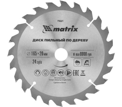 MATRIX Пильный диск 73221, по дереву, 165мм, 2.3мм, 20мм