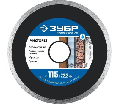 ЗУБР Диск отрезной 36663-115 d=115мм d(посад.)=22.2мм (угловые шлифмашины)