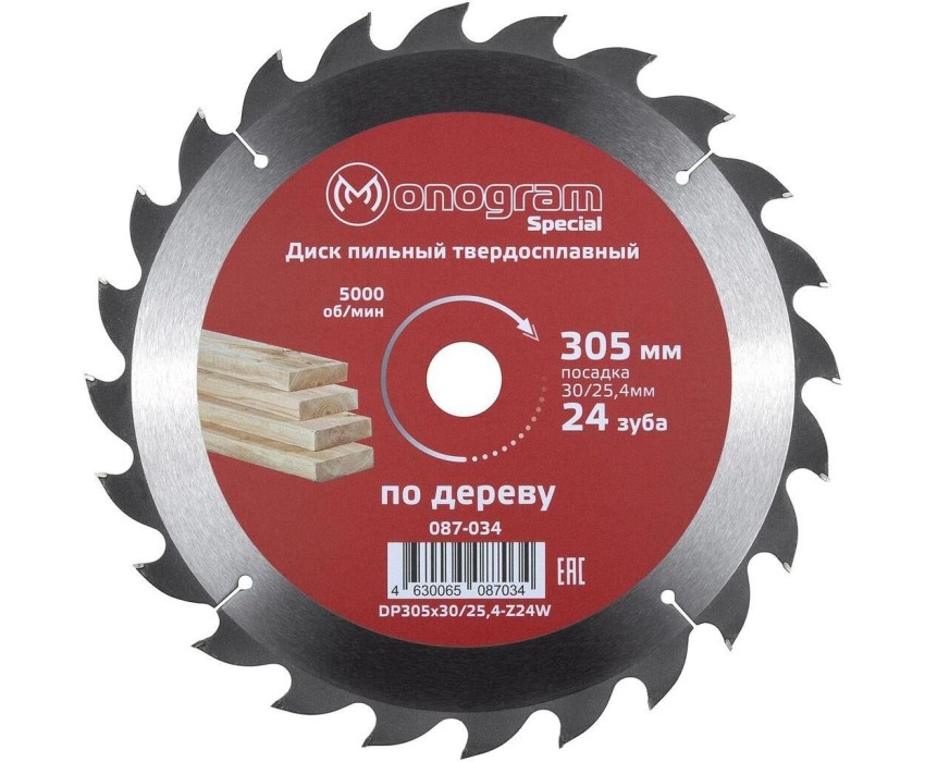 MONOGRAM Диск пильный по дер. 087-034 d=305мм d(посад.)=30мм (циркулярные пилы) (упак.:1шт)