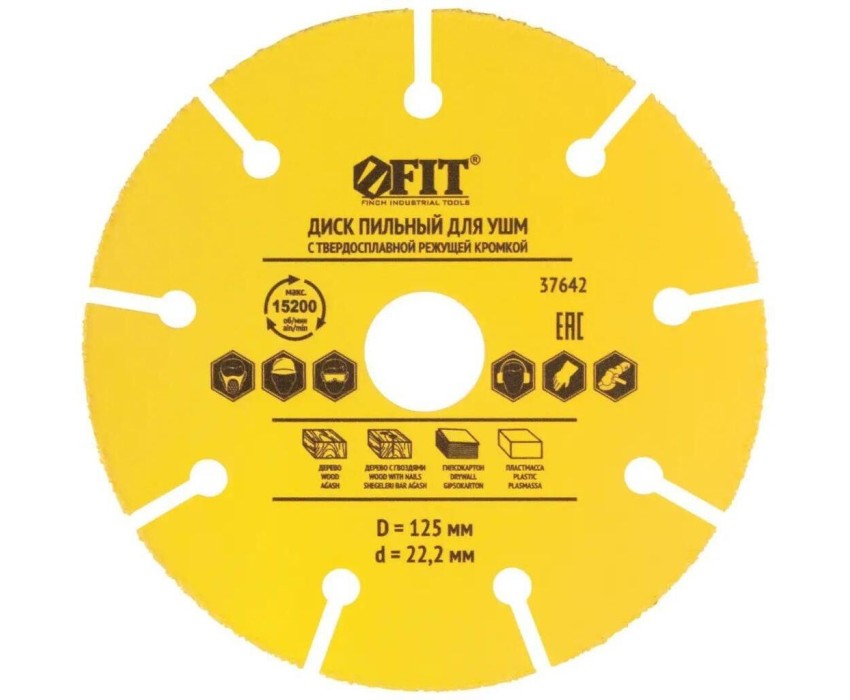 FIT Диск пильный по дер. 37642 d=125мм d(посад.)=22.2мм (угловые шлифмашины)