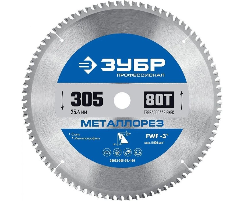 ЗУБР Диск пильный по мет. 36932-305-25.4-80 d=305мм d(посад.)=25.4мм (торцовочные пилы)
