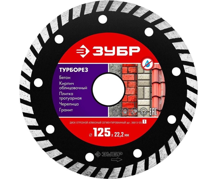 ЗУБР Диск алмазный по бет. 36613-125 (36613-125_Z01) d=125мм d(посад.)=22.2мм (угловые шлифмашины) (упак.:1шт)