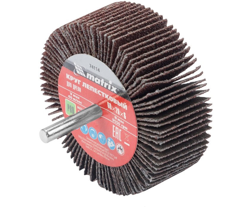 MATRIX Круг лепестковый для дрели, 60 х 20 х 6 мм, P 80 74114