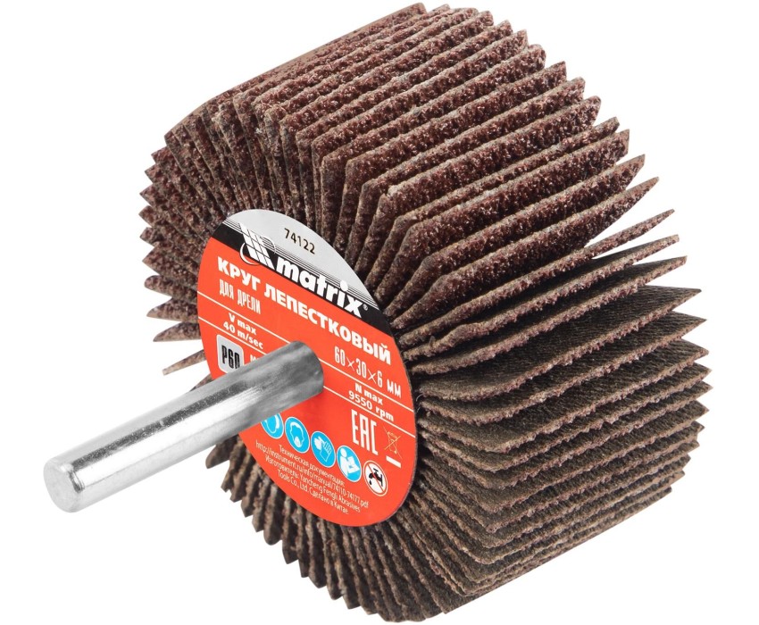 MATRIX Круг лепестковый для дрели, 60 х 30 х 6 мм, P 60 74122