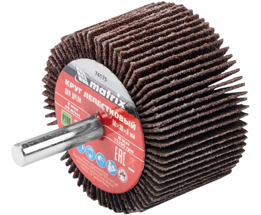 MATRIX Круг лепестковый для дрели, 50 х 30 х 6 мм, P 100 74175