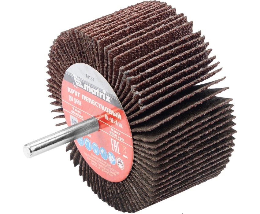 MATRIX Круг лепестковый для дрели, 80 х 40 х 6 мм, P 60 74152