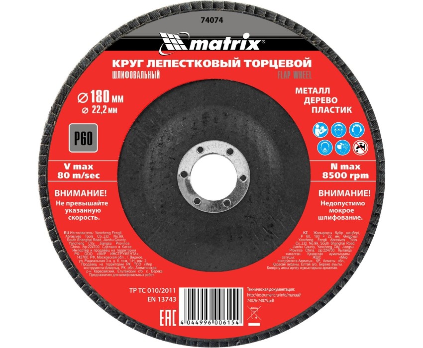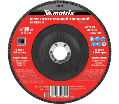 MATRIX Круг лепестковый торцевой, P 60, 180 х 22.2 мм 74074