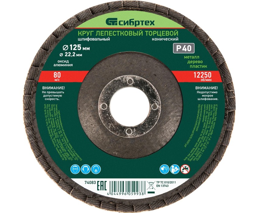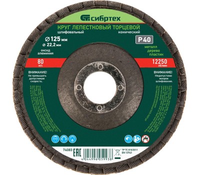 СИБРТЕХ Круг лепестковый торцевой, конический, Р 40, 125 х 22.2 мм 74083