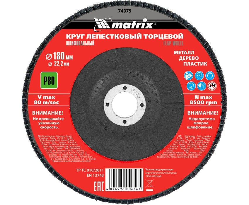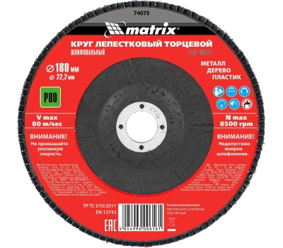 MATRIX Круг лепестковый торцевой, P 80, 180 х 22.2 мм 74075