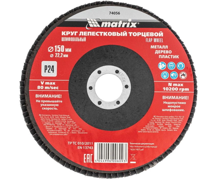 MATRIX Круг лепестковый торцевой, P 24, 150 x 22.2 мм 74056