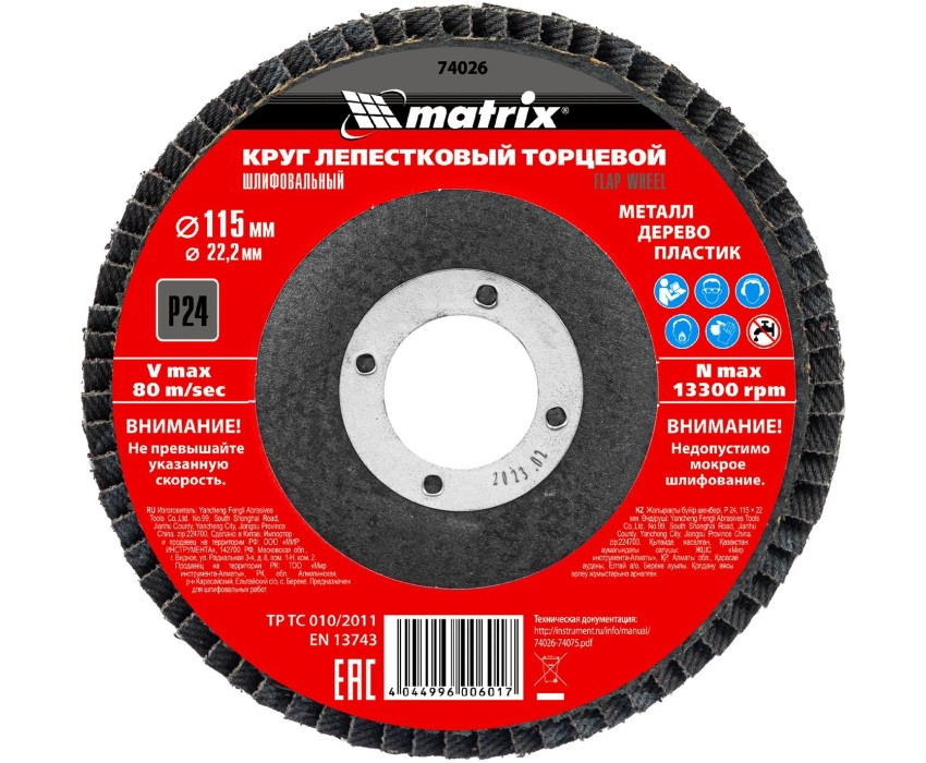 MATRIX Круг лепестковый торцевой, P 24, 115 х 22,2 мм 74026