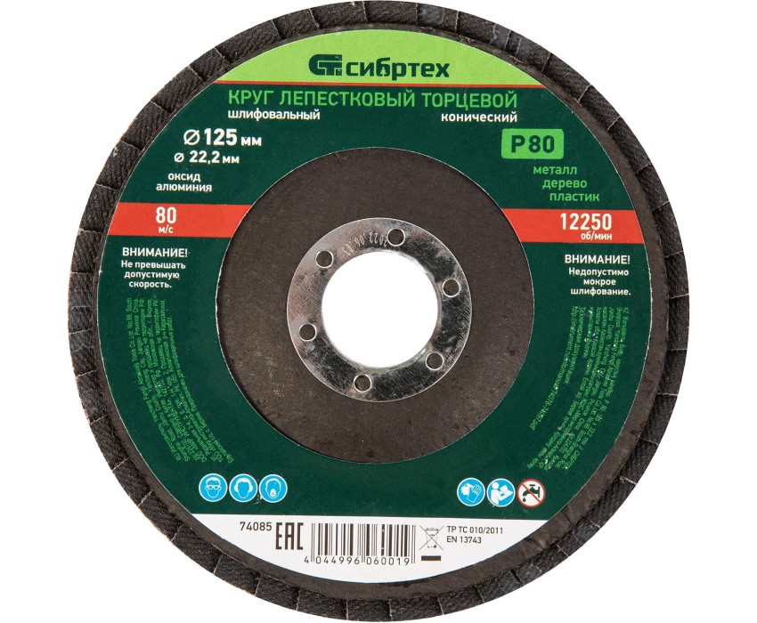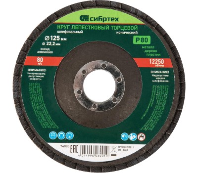 СИБРТЕХ Круг лепестковый торцевой, конический, Р 80, 125 х 22.2 мм 74085